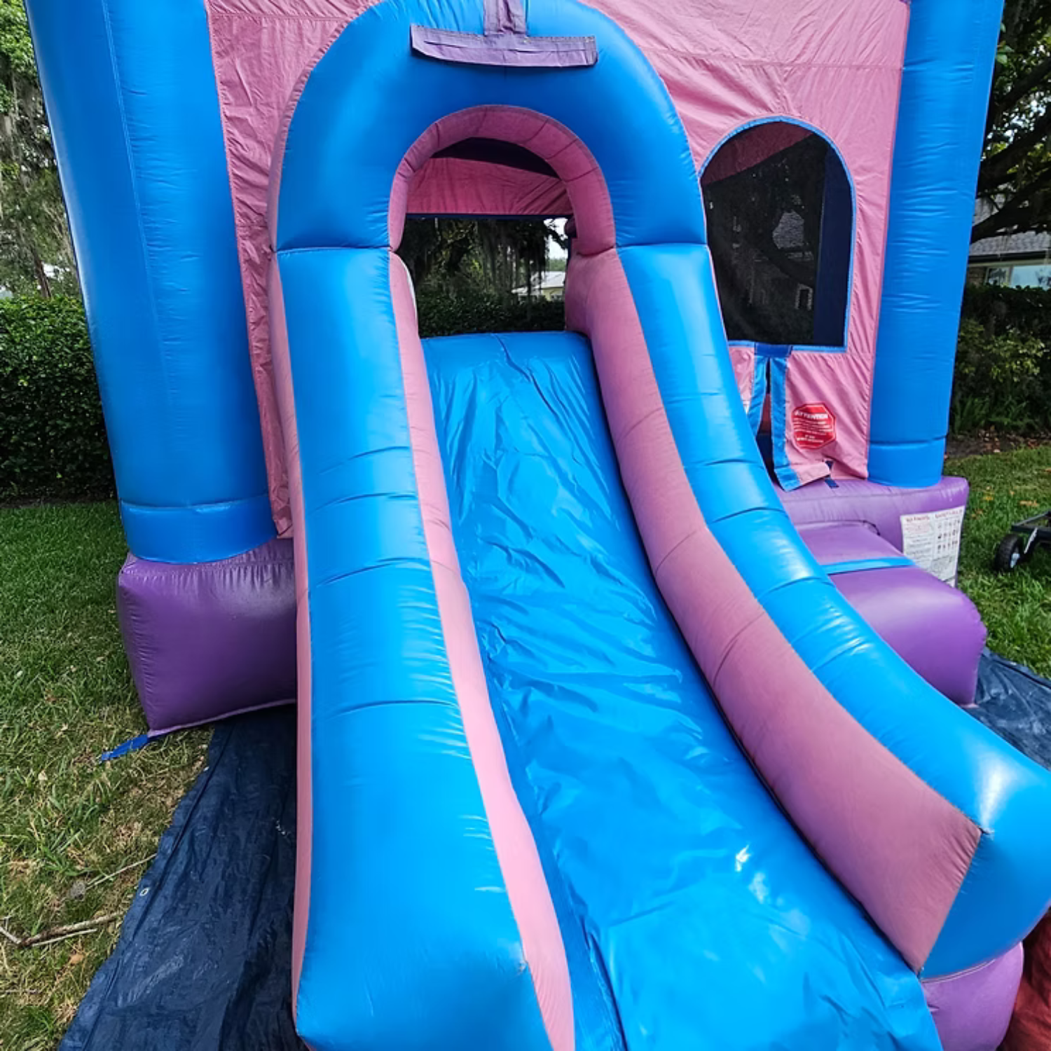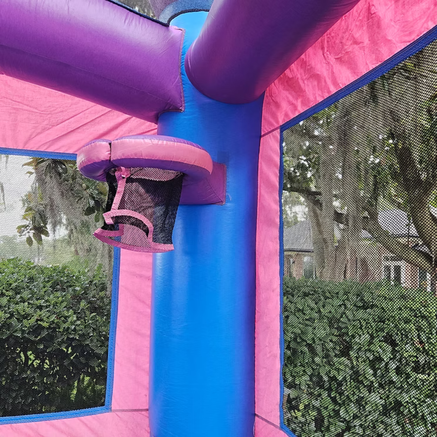 The Pink 5-in-1 Combo is the ultimate inflatable for royal celebrations! This large combo unit includes a bounce area, slide, climbing wall, basketball hoop, and splash pool for warm-weather fun. Elegant colors and safe design make it perfect for princess-themed birthdays or summer events. No shoes, silly string, food, glitter or drinks etc... Has slide / basketball hoop / climb / bounce /pool (You must provide a ball) This unit is sure to bring some magic to your next event. This unit is great for all ages and genders. This show-stopping unit is excellent for outdoor birthday parties, block parties and or backyard events.. All of our units are ASTM Compliant. They are made of fire retardant, high-quality, commercial vinyl. All units are 100% lead-free. IS A $75 REFUNDABLE SECURITY DEPOSIT CHARGED AT CHECKOUT. The bouncer must be blown up & clean when picked up or your security deposit will be voided IF you are using this unit where there is no electricity you will need a Generator for power ! No shoes, silly string, food, glitter or drinks etc... IF THERE ARE ANY OBSTRUCTIONS WITH DELIVERY PLEASE LET US KNOW A FEW DAYS BEFORE YOUR EVENT SO THAT WE CAN PREPARE AND HAVE A SMOOTH DELIVERY |